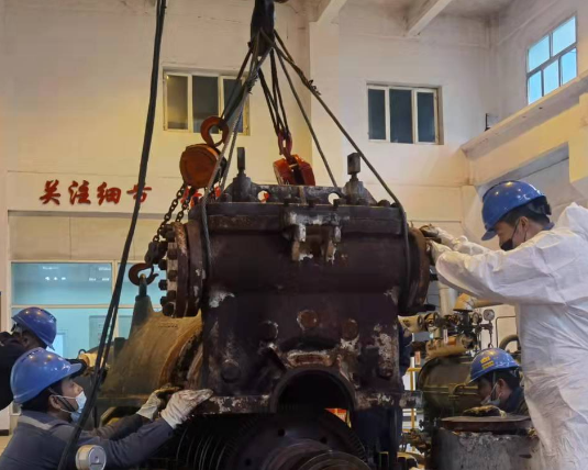 待大蓋被成功吊起后,又會小心翼翼地操控著冠航手拉葫蘆,將大蓋緩緩放置到提前準備好的合適存放位置上。整個過程中,每一個動作、每一個細節都是為了防止大蓋出現損壞,畢竟大蓋的完好與否關乎著后續維修工作能否順利開展以及汽輪機能否再次高效投入運行呀。